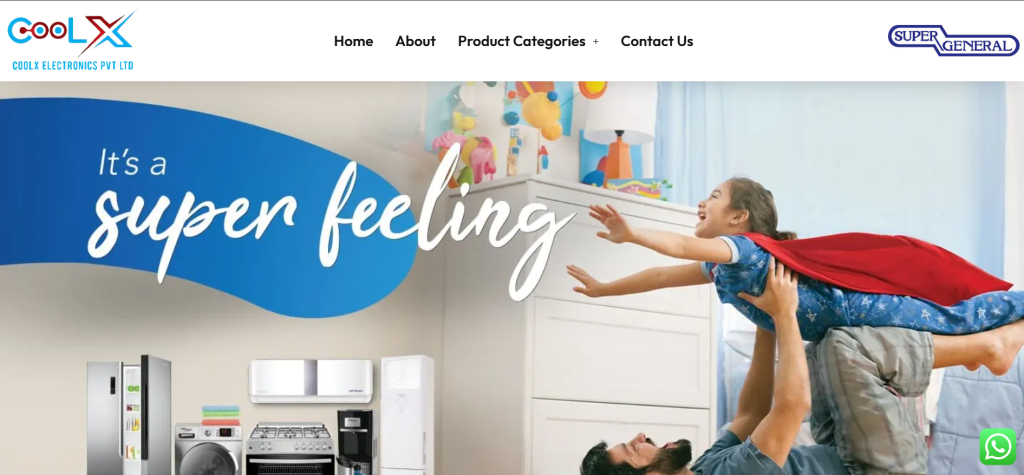 Coolx is a trusted distributor of home appliances in Pakistan, offering products like ACs, refrigerators, and washing machines. The website is simple and provides easy access to service requests.
